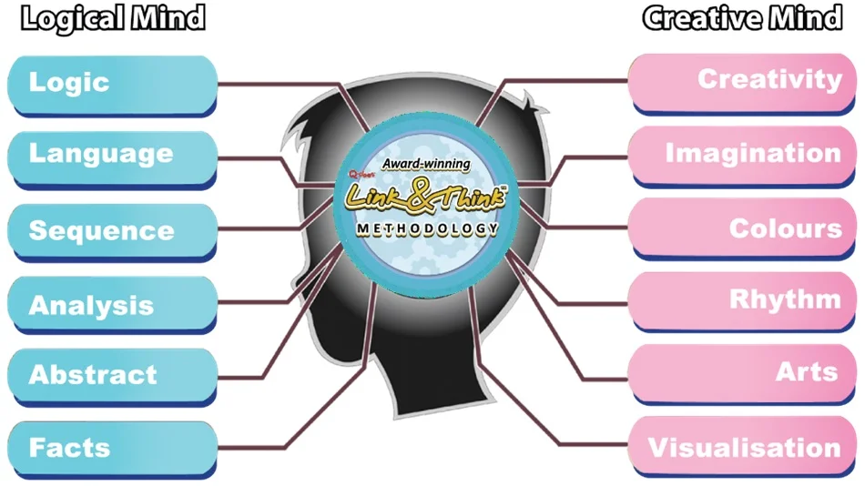We use our ever-evolving, award-winning Link & Think Methodology in our programmes to Link the logical and creative. Each time a link happens, a learning connection is formed. This is possible because our programmes are so integrated that your child’s brain cells cannot stop making learning connections. Now, learning is accelerated, simple and motivating to your child.